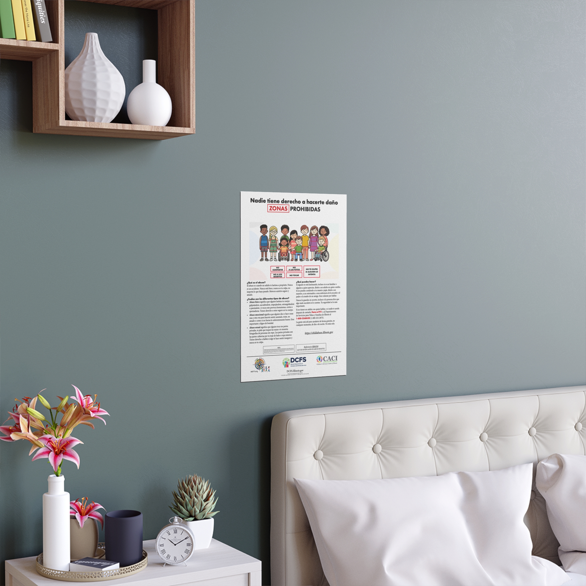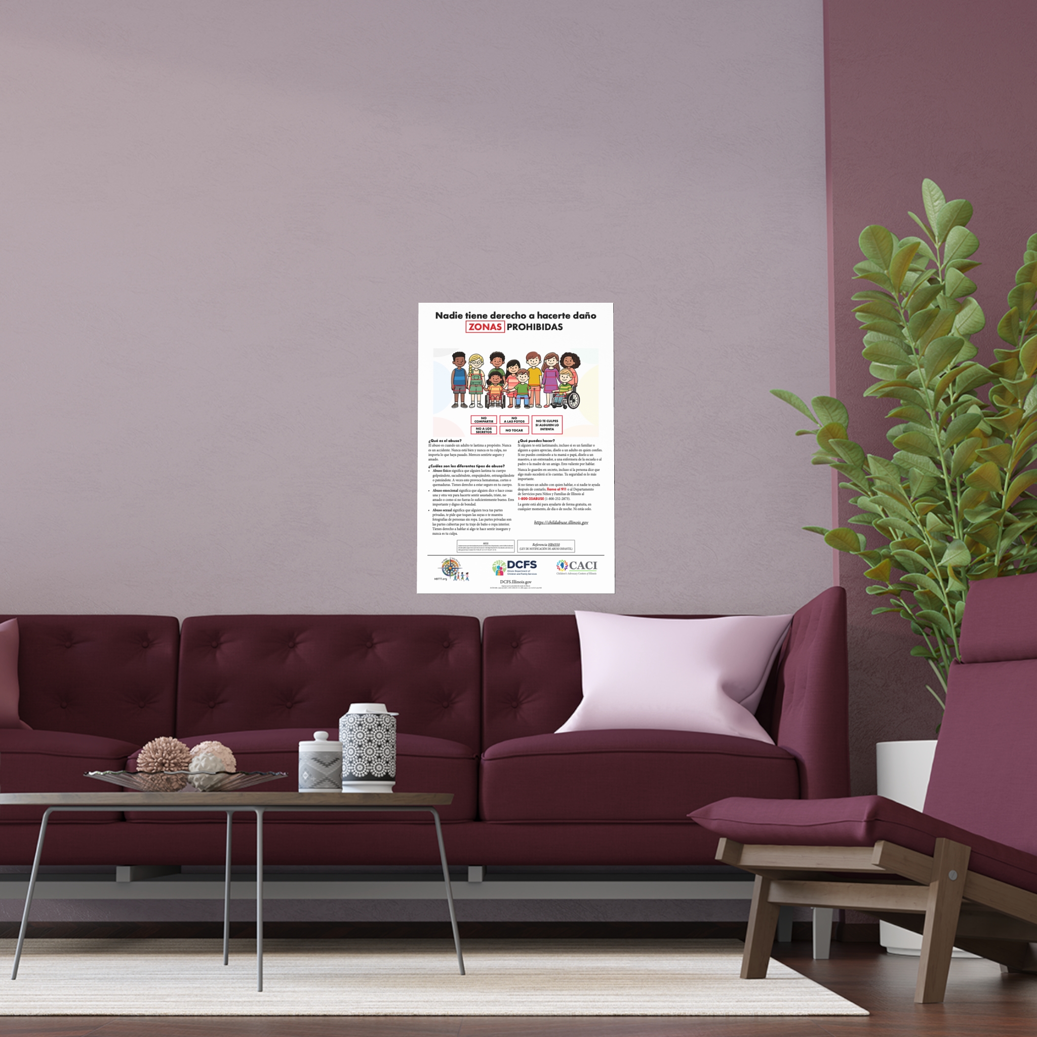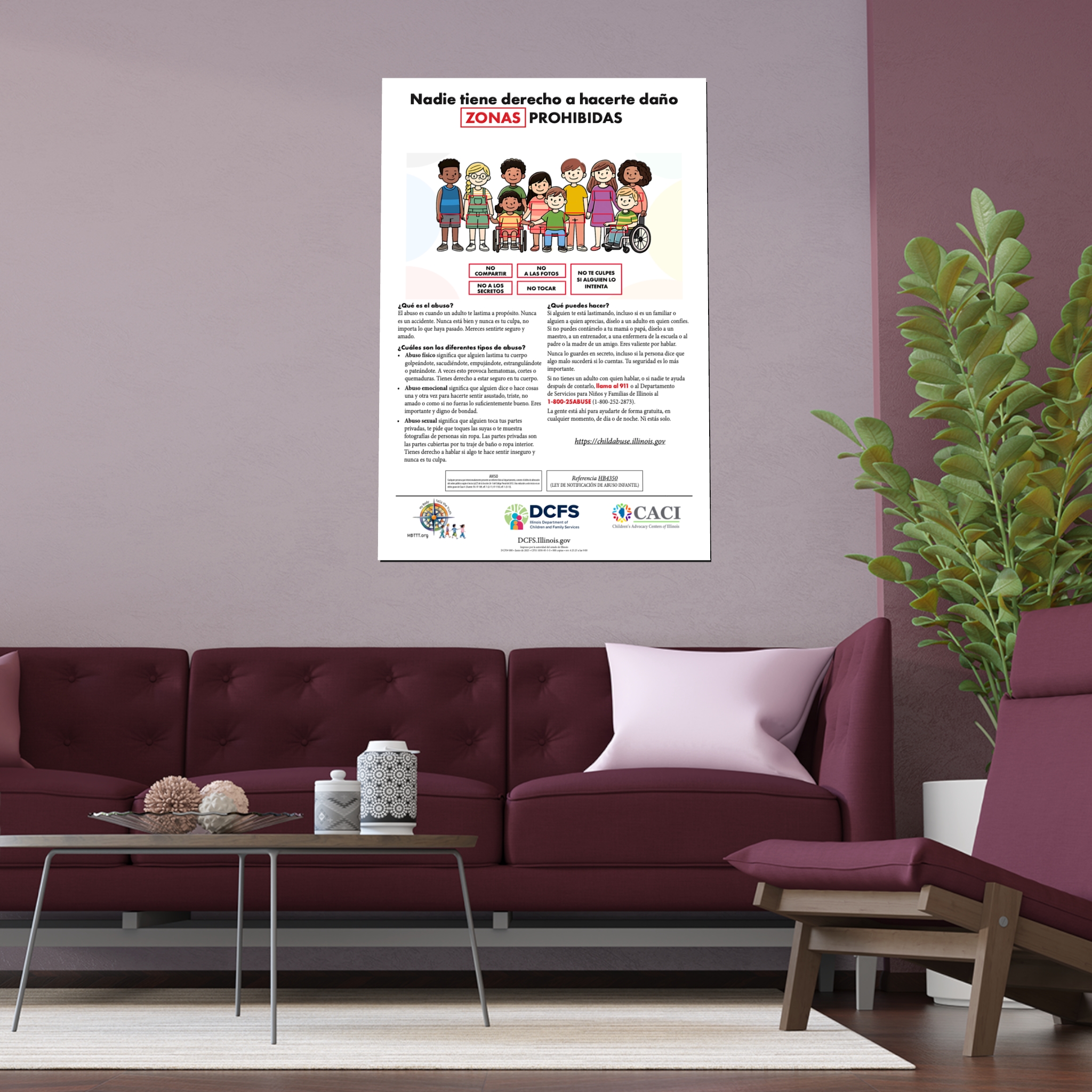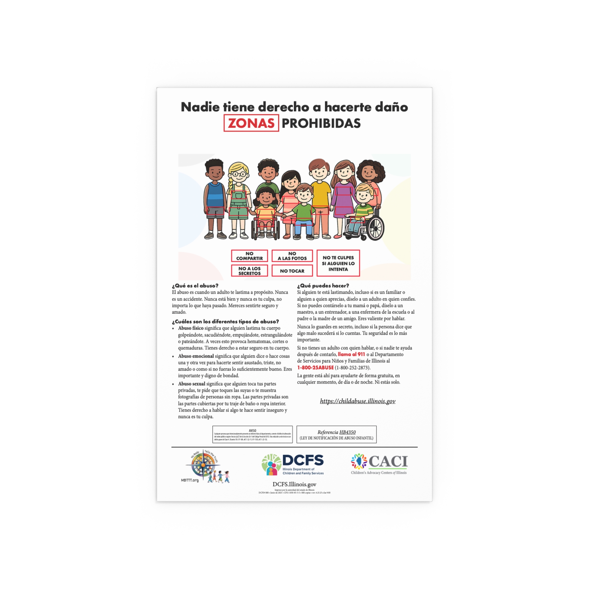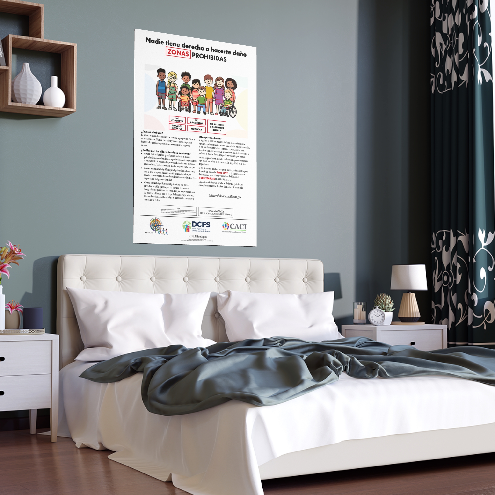 Illinois Child Abuse Prevention Poster-SPANISH | No Go Zones Awareness Silk Poster | Required Fore Certain Businesses | Indoor & Outdoor Use